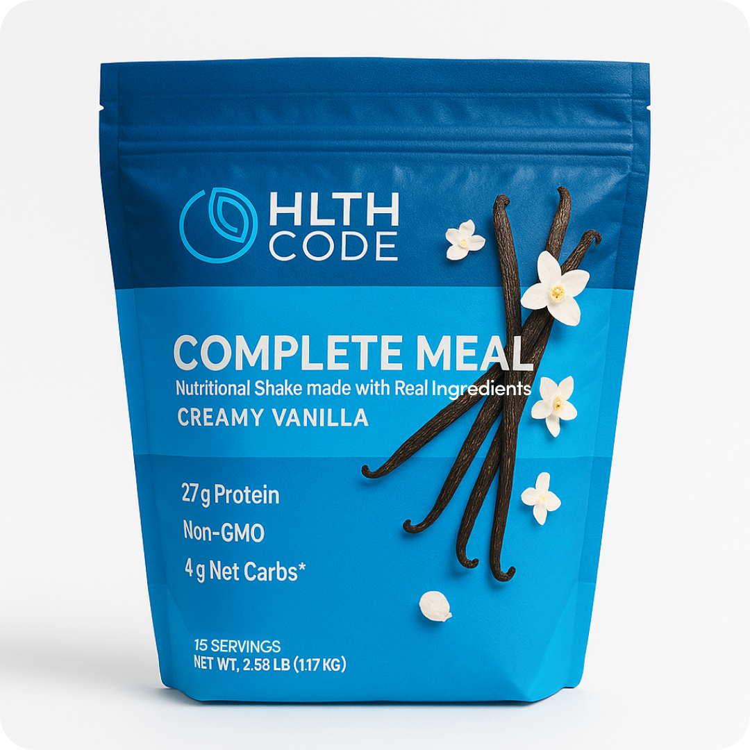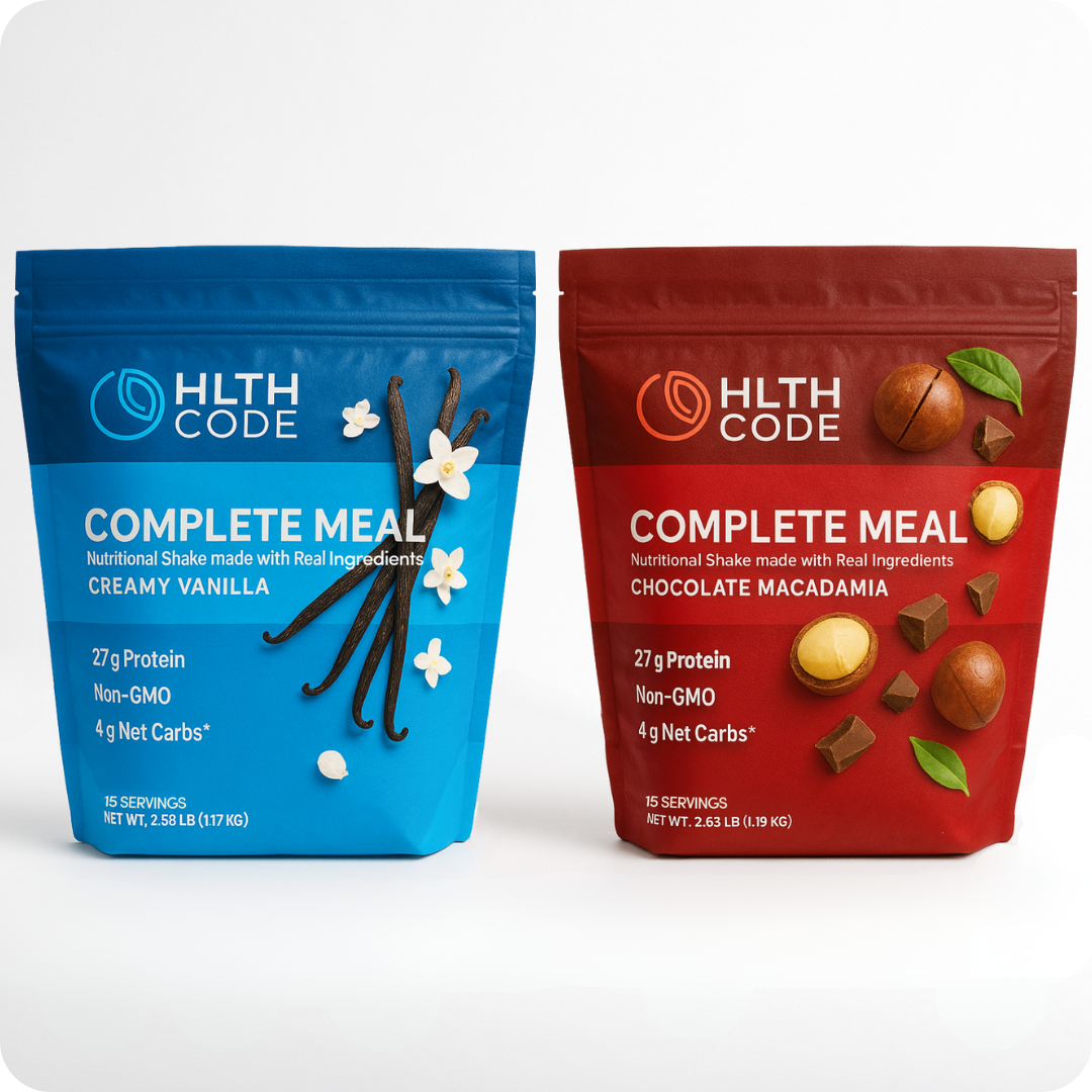 We recommend up to two complete meals (two scoops per shake) per day. Depending on your health goals, you can replace 1 or 2 meals a day with HLTH Code Complete Meal.