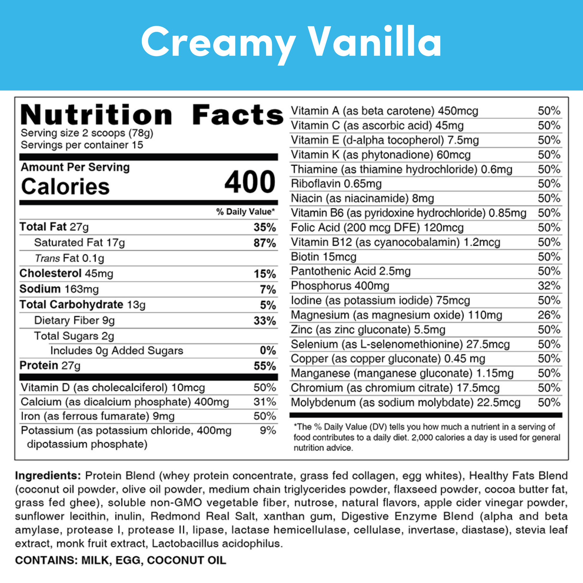 In case there was any doubt our shakes are truly a “Complete Meal,” we topped off each serving with up to 50% of your required daily value of 25 vitamins and minerals.